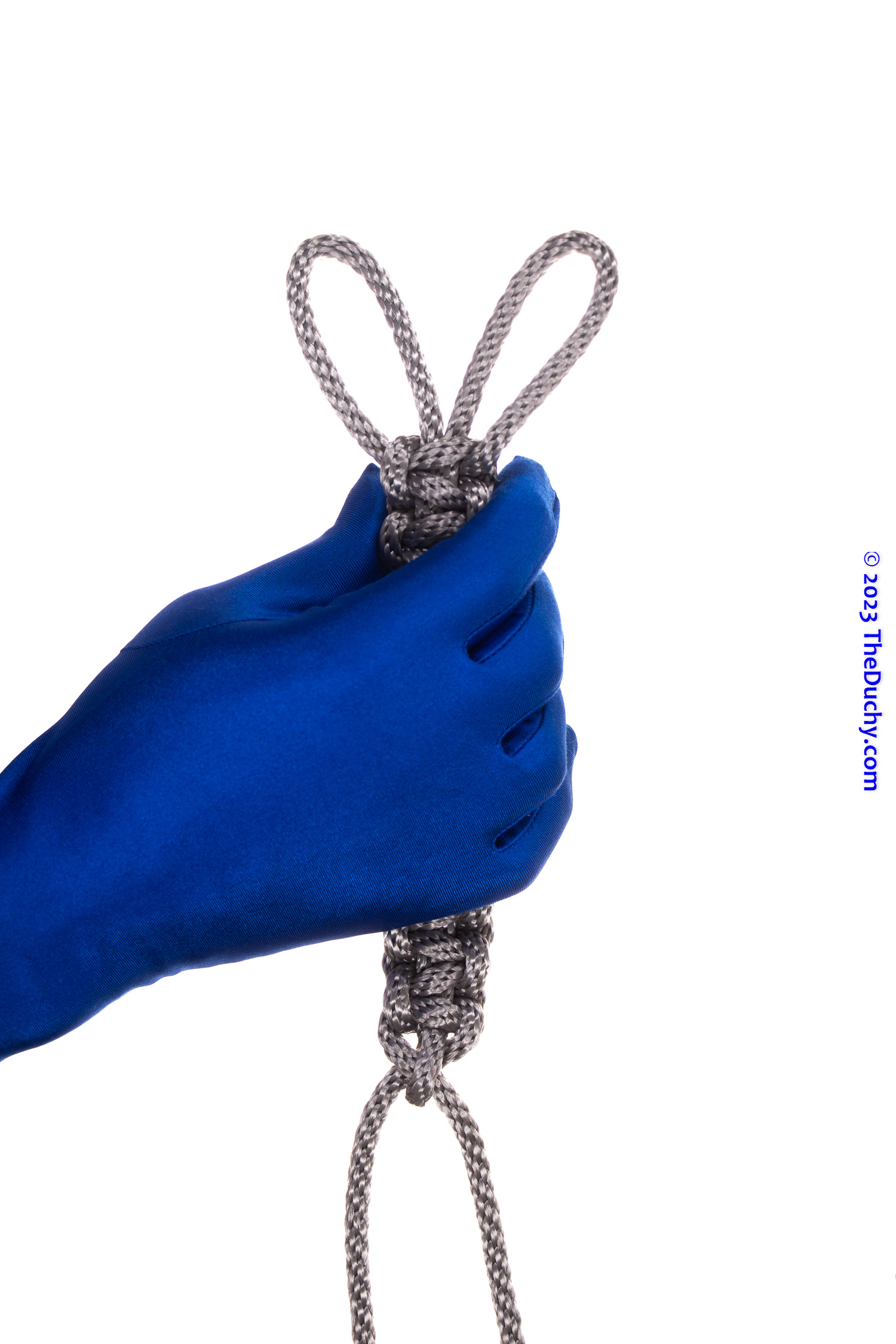 2. Run the tail to the back and create an Overhand Knot just above the butt cheeks.